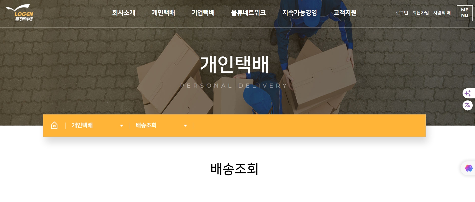 로젠택배 홈페이지